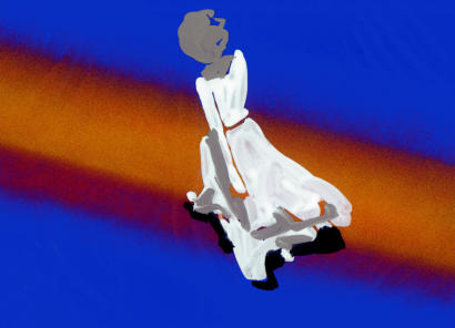 à l’autre, croisant une inconnue en rouge qu’il finira