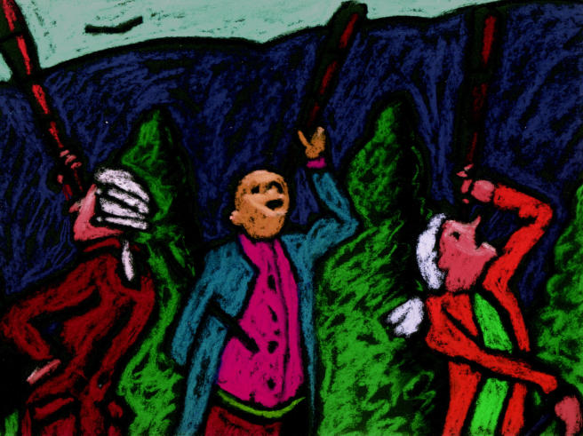 Acrylique et pastel gras sur cellulo.